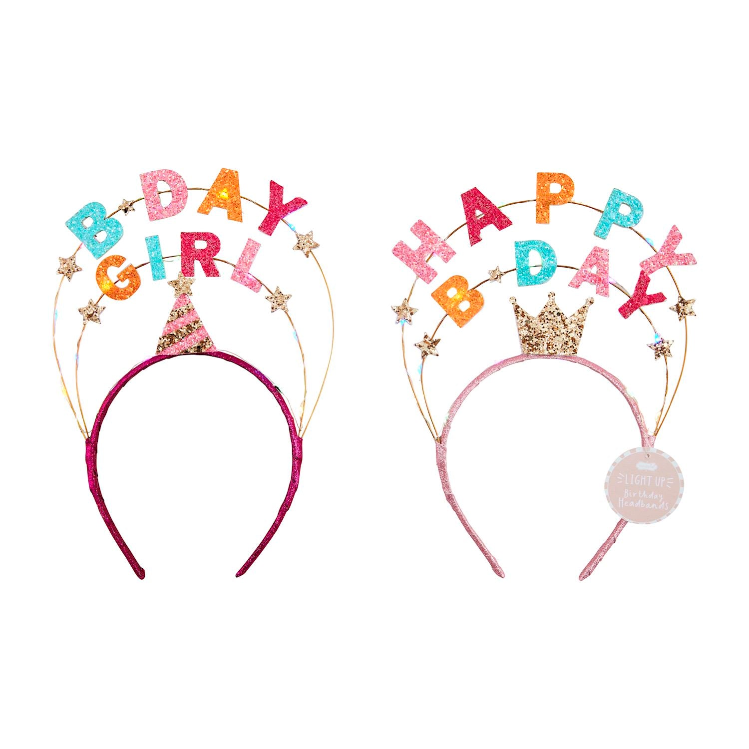 Glitter headband with light-up detail. Batteries included. Ages 3+.