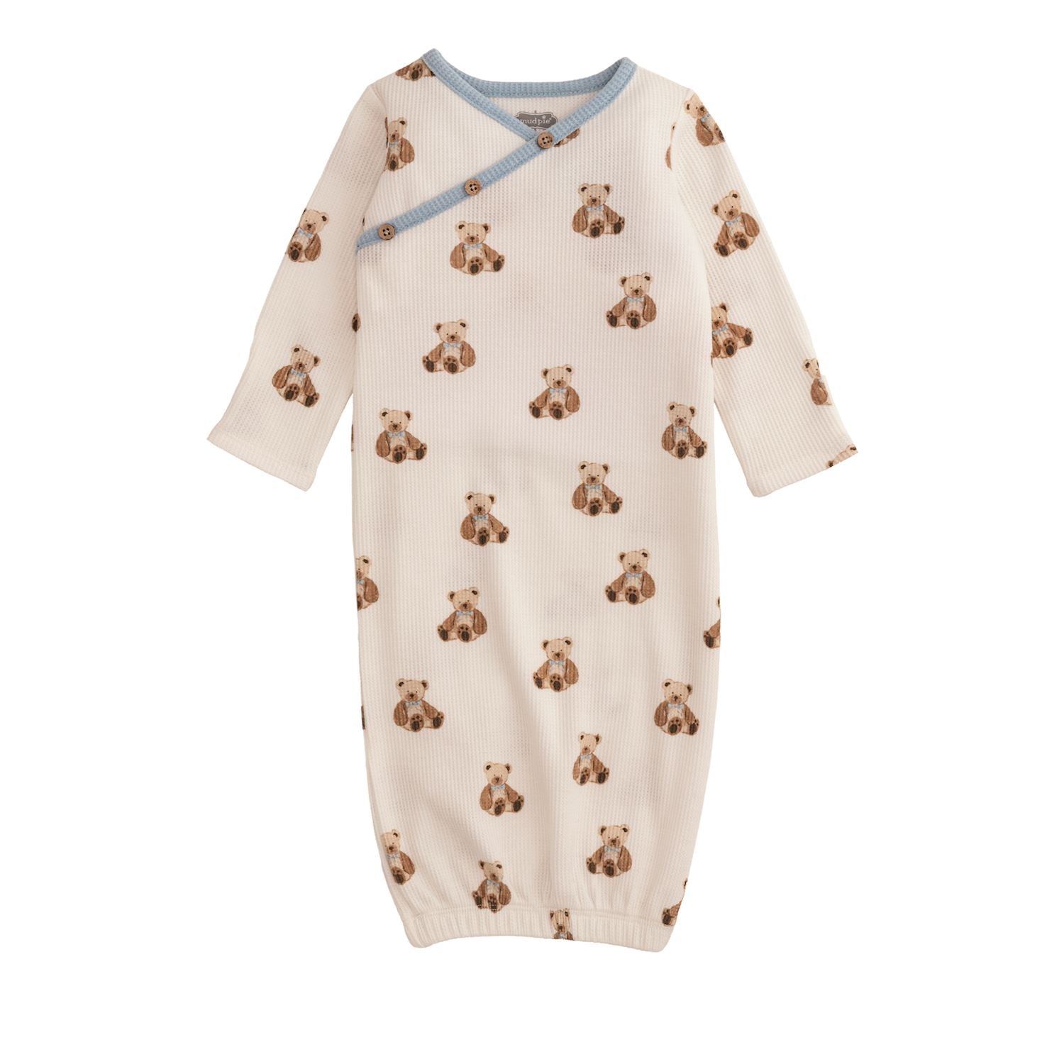 Waffle Weave cotton gown w/ coconut wood buttons on chest.