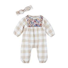 Neutral Check Floral Longall & Headband Set